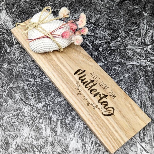 Die Gravur „Alles Liebe zum Muttertag“ macht das Brett zu einer wunderschönen kleinen Aufmerksamkeit, die Wertschätzung und Dankbarkeit ausdrückt. Perfekt, um einer besonderen Mama eine Freude zu machen und ihr zu zeigen, wie viel sie bedeutet.