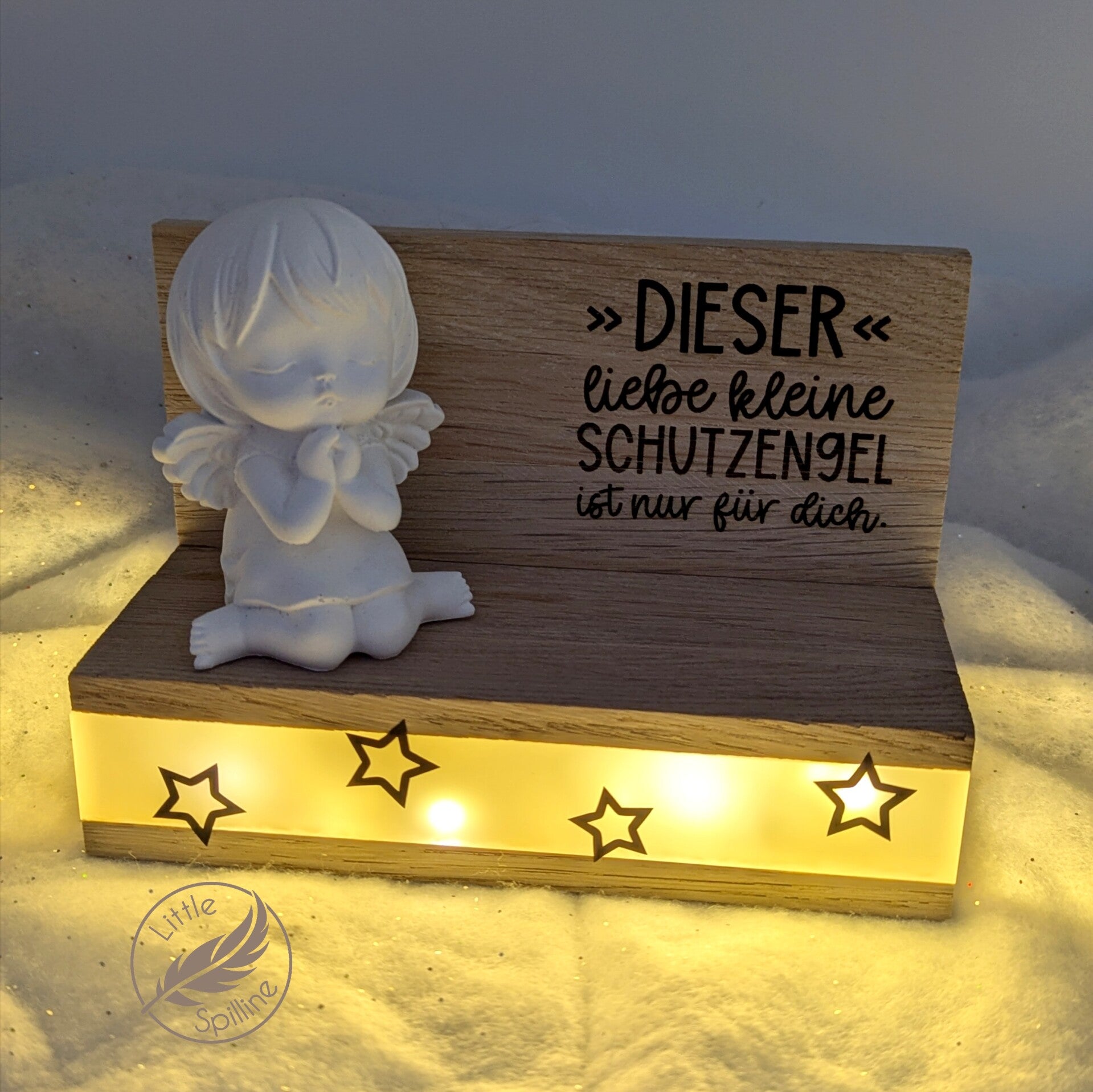 Ein zauberhafter Schutzengelspruch rundet das Design ab und macht die Box zu einem Symbol für Hoffnung, Trost und gute Wünsche. Ob als liebevolles Geschenk für einen besonderen Menschen oder als kleiner Lichtblick für den eigenen Alltag – diese Lichtbox ist ein wundervolles Dekorationsstück, das Gefühle sichtbar macht.